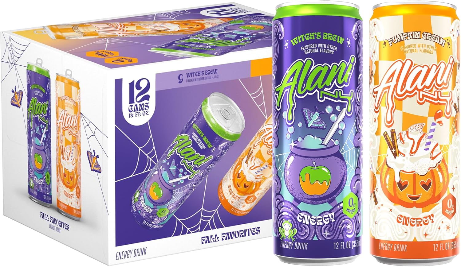 (12 Pack)Alani Nu VARIETY PACK - WITCH'S BREW & PUMPKIN CREAM Sugar Free, Low Calorie Energy Drinks, 200mg Caffeine, Antioxidants, Biotin B Vitamins, Zero Sugar, 15 Calories or Less, 12 Fl Oz Cans