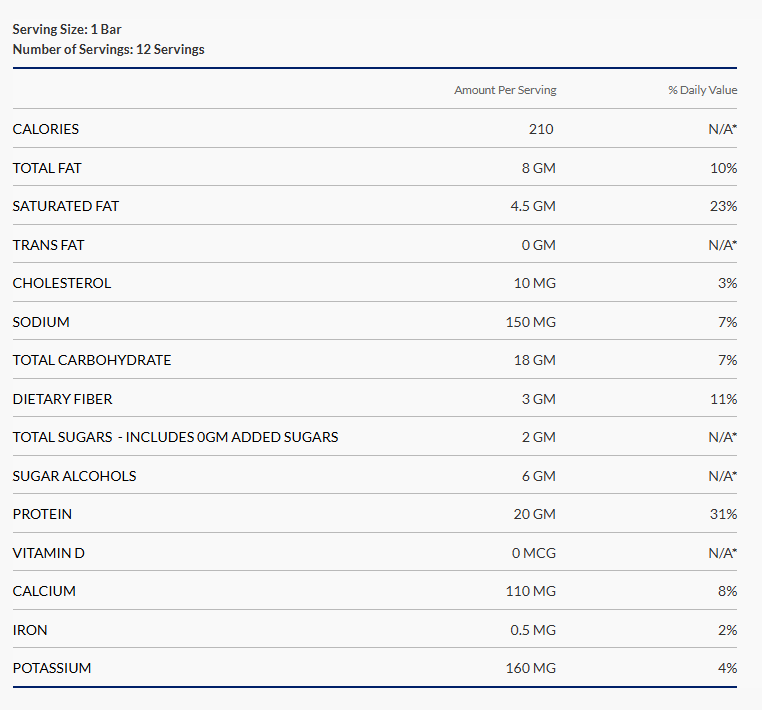 Milk protein blend (calcium caseinate, whey protein isolate, whey protein concentrate), maltitol, glycerin, bovine collagen hydrolysate, peanut butter (peanuts), soy protein isolate, polydextrose, cocoa butter, water, dry whole milk, roasted peanut pieces, unsweetened chocolate, xylitol, artificial & natural flavors, salt, sunflower lecithin, sucralose. Contains: Milk, soybeans, almonds.