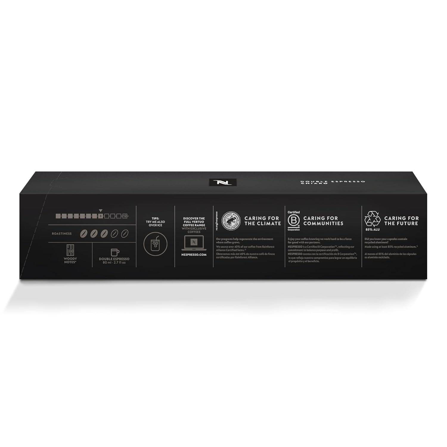 - DOUBLE ESPRESSO CHIARO ESPRESSO BREWS 2.7 FL. OZ.: These Nespresso Vertuo pods are part of the Double Espresso range that will provide you with a 2.7 fl. oz. serving of espresso which will help you double up on your single espresso coffee