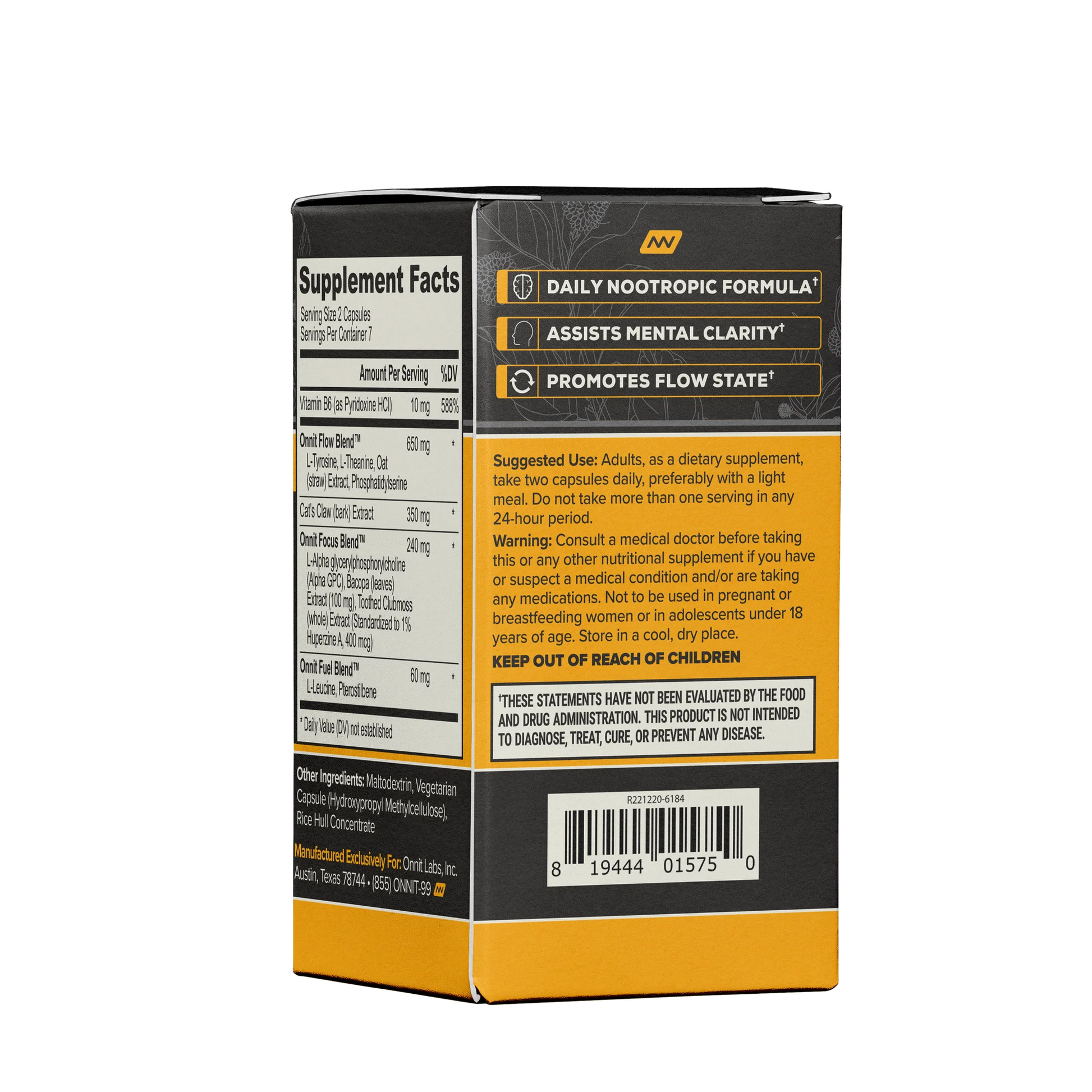 - Formulated with Cat’s Claw Extract, Bacopa, Oat Straw, Huperzia Serrata, and Focus and Flow Blends to help cognition enhancement