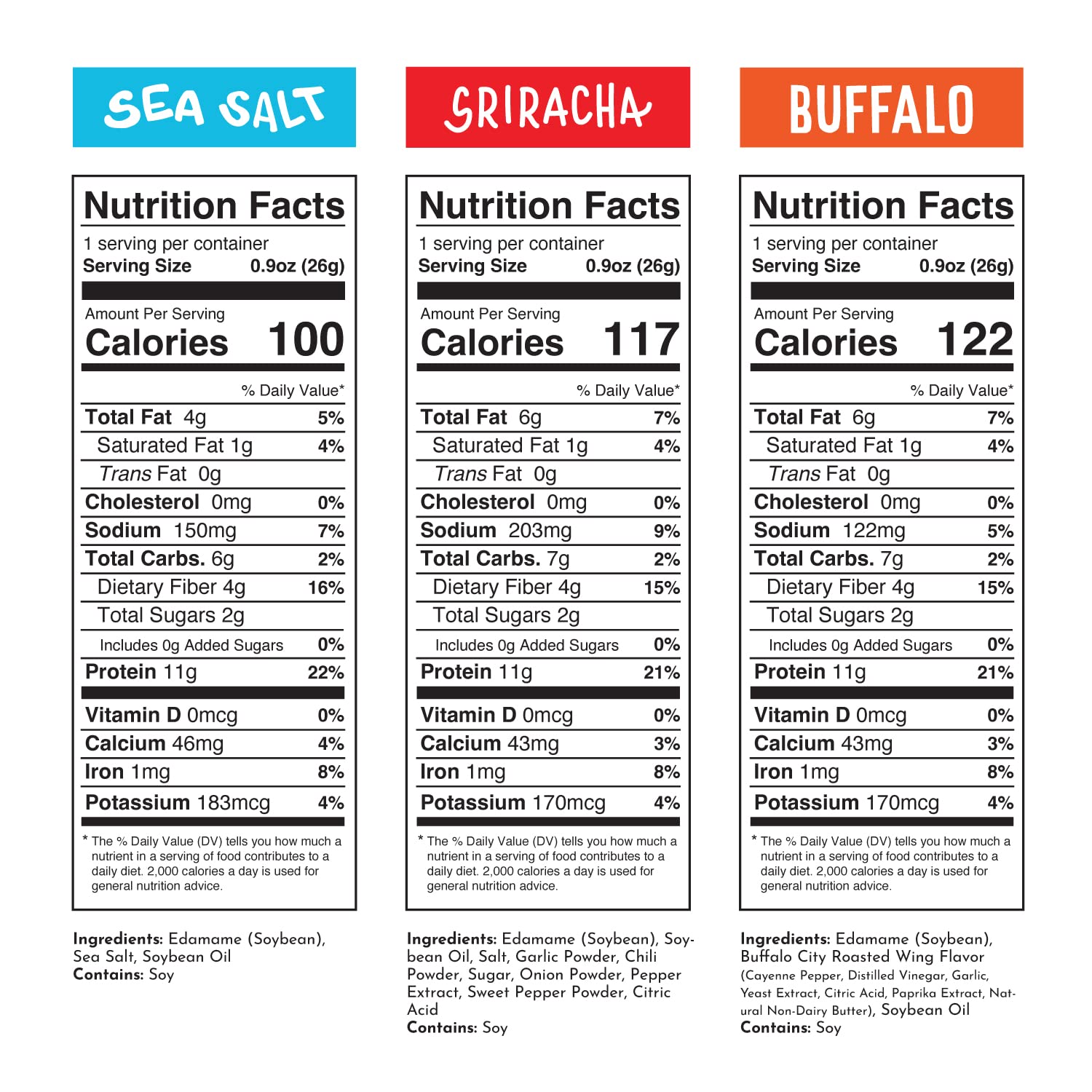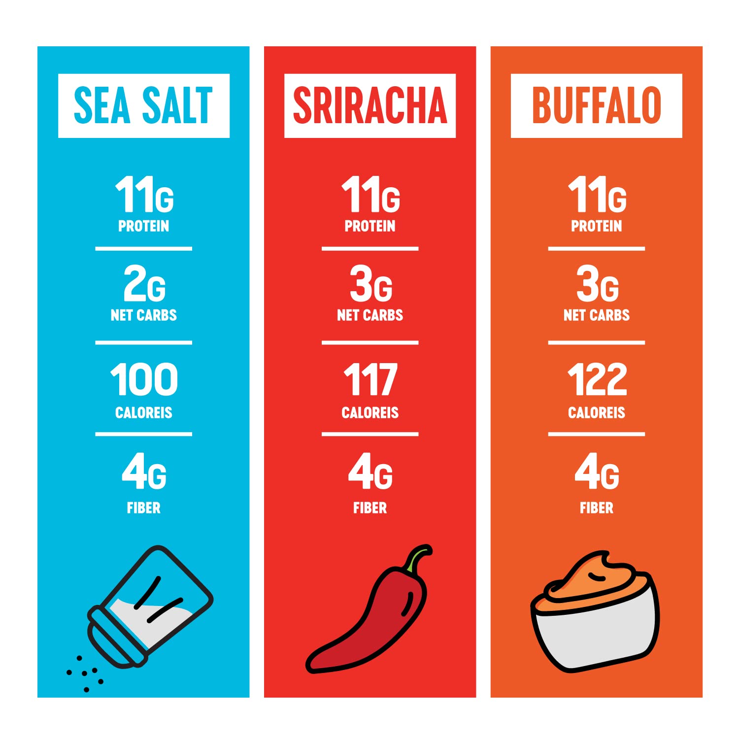 Flavor | # Variety (Sea Salt, Sriracha, Buffalo) |