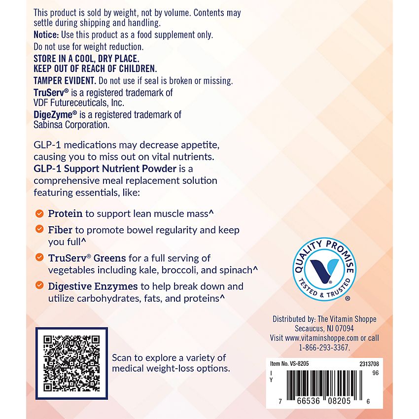 Having a lower appetite can lead to missing out on vital nutrients. GLP-1 Support Nutrient Powder from Whole Health Rx™ by The Vitamin Shoppe® helps fill nutritional gaps while supporting digestive, immune, and metabolic health with 25 vitamins and minerals, 25g of protein, 1 serving of vegetables, plus prebiotics, greens, and digestive enzymes in every serving.